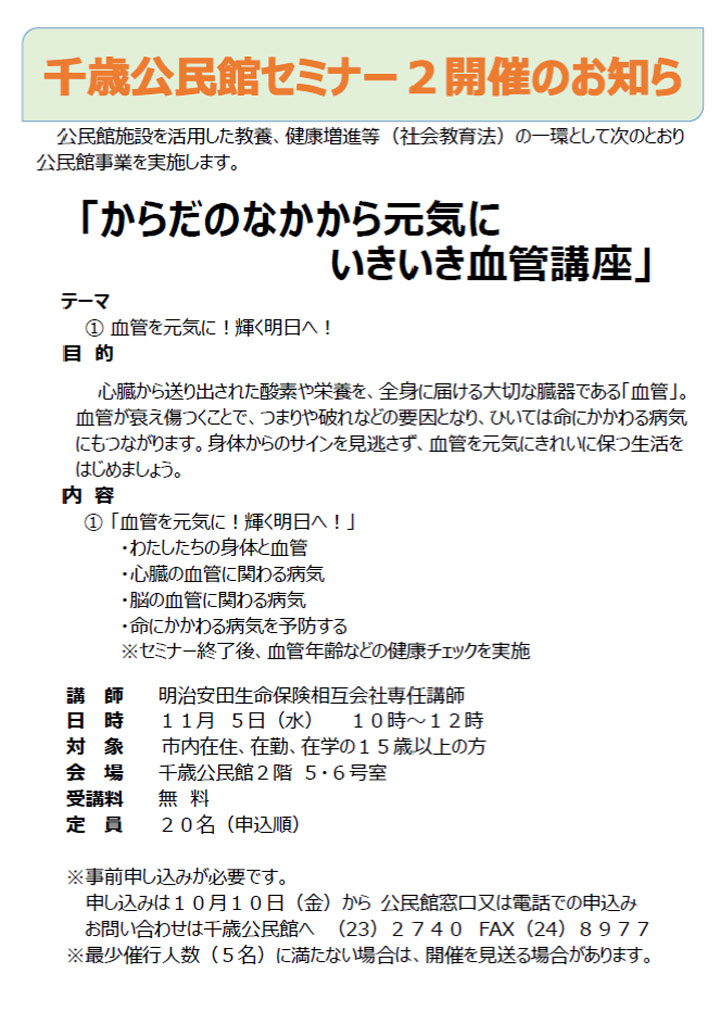 【主催・問合せ】電話または公民館窓口にて受付 千歳公民館