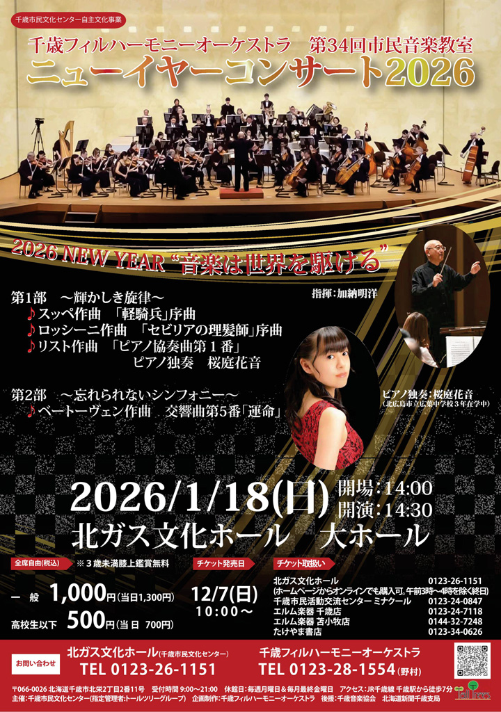 【主催・問合せ】 千歳市民文化センター 【企画制作】 千歳フィルハーモニーオーケストラ |